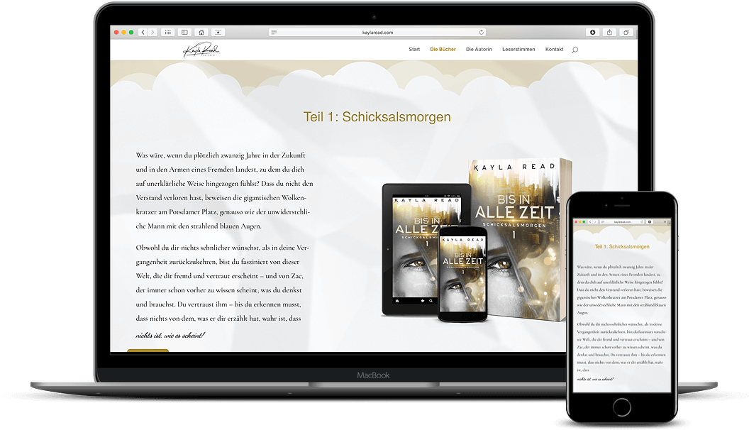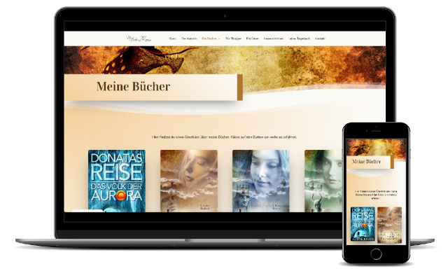 Bei der klassischen Fantasy-Autorin ist von Drachen, Elben, Zwergen bis zu Zauberern alles dabei, deshalb sollte die Webseite in orangenen Pastelltönen verspielt und romantisch werden, ohne dabei kitschig zu wirken.