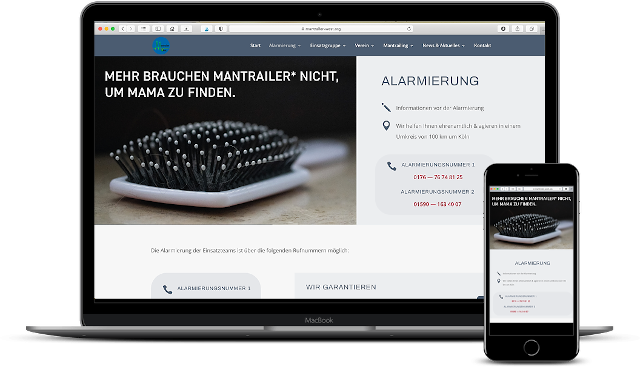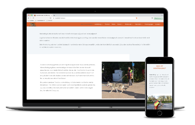 Nachdem meinem Kunden die Seite für Mantrailer West so gut gefallen hat, durfte ich auch für Mantrailer Köln die Webseite entwerfen. Sie ist etwas heller gestaltet, aber auch hier dominieren klare Linien und ein zurückhaltendes Design.