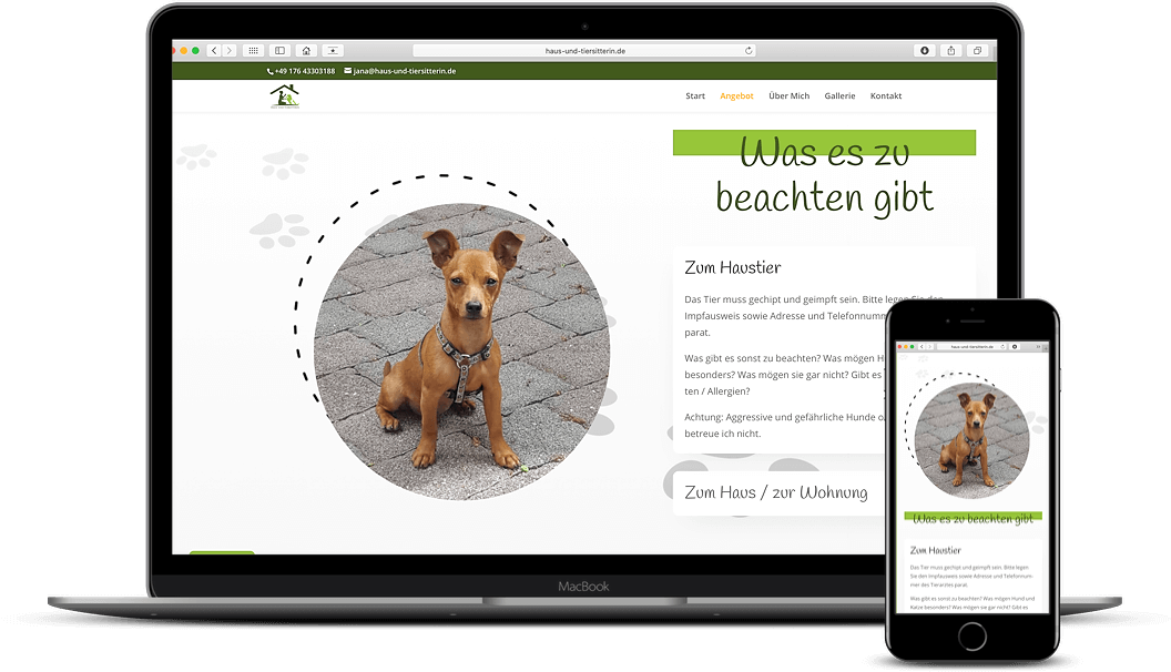Wenn Sie mit meinem Angebot einverstanden sind, schicken Sie mir alle Informationen, Fotos und Texte und ich erstelle eine wunderschöne, rechtssichere und elegante Webseite nach Ihren Wünschen und Vorgaben.
