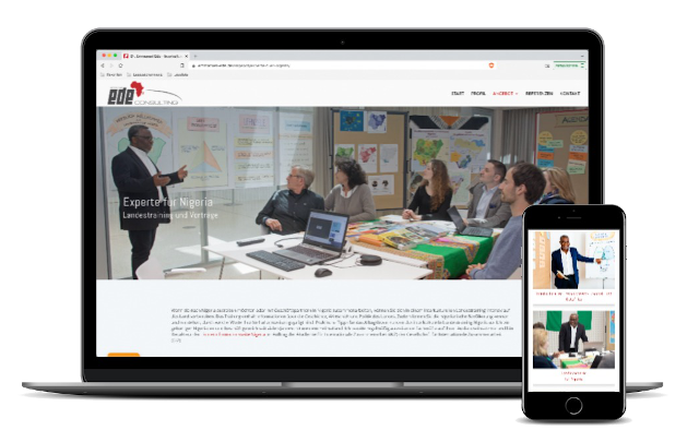 Herr Ede wünschte sich ein traditionelles Design ohne viel Schnickschnack, dass seine Kompetenz als interkultureller Trainer verdeutlicht und ihn als Experte auf seinem Gebiet auszeichnet.